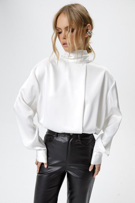 Струящаяся свободная блуза со стойкой-бантом.