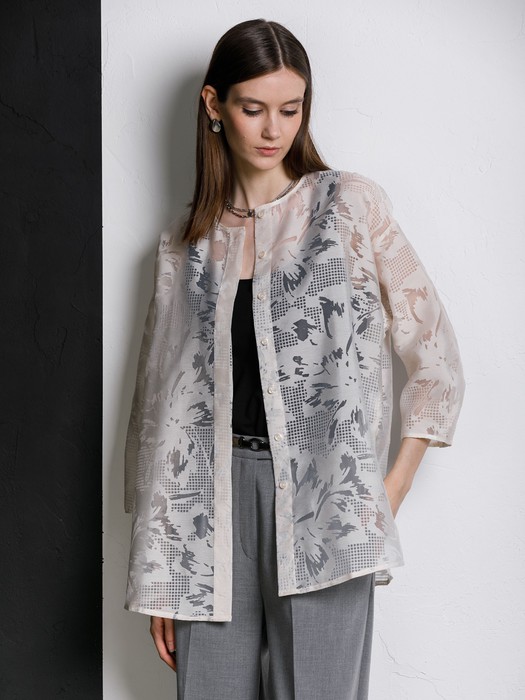 Блузка из органзы с вытравной печатью. Вытравная печать сохраняет дышащие свойства текстиля. Даже при носке одежды в жару кожа дышит.
