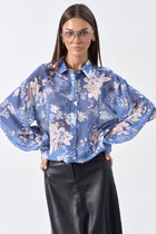 Блузка женская прямого силуэта, с втачным рукавом. Горловина v-образной формы. Отделкой служит воротничок из кружева. Застежка центральная на пять петель и пуговиц. По линии груди вытачки. Рукав длинный расширенный к низу, на притачной манжете с застежкой на петлю и пуговицу. В боковых швах обработаны разрезы.