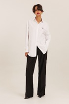Блуза свободного кроя с ассиметричным отложным воротником. Рукав цельнокроенный с притачной манжетой. Ассиметричная сквозная застёжка на петлю и пуговицу. По спинке декоративная складка. Правая часть блузки короче левой на 4 см. Длина изделия 61 см (по короткой стороне)