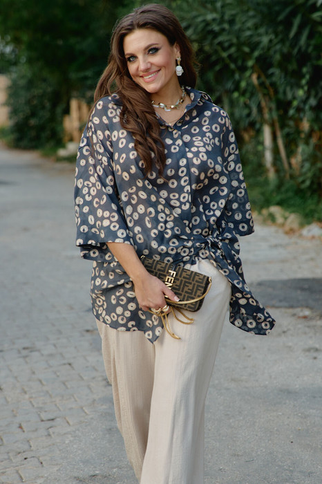 Совместные закупки Екатеринбург Женская одежда Блузки, рубашки — Блуза Vittoria Queen 28613бл серо-синий, принт горохи