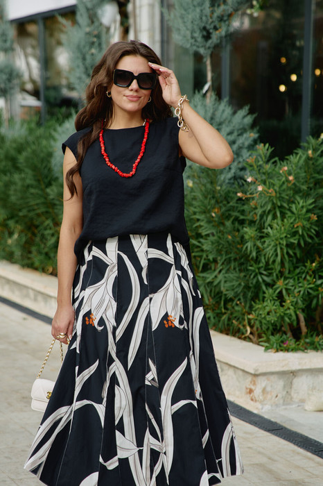 Базовая чёрная блуза без рукава — это не просто предмет одежды. Это пространство. Пустота, которую можно заполнить чем угодно: яркой юбкой, строгими брюками, джинсами с потертостями. Это холст, на котором можно рисовать любой образ. Сочетается со всем — от белых льняных брюк до кожаной юбки. Подходит для любого случая — офис, свидание, прогулка, вечеринка. Не устаревает — она вне времени, как чёрный цвет. Подчёркивает, а не перебивает — акценты остаются для аксессуаров и нижней части образа.