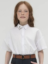 Блузка нарядная для девочек из высококачественного трикотажа(кулирка качество пенье). Силуэт блузки свободный, расклешенный. По низу полочки и спинки проходит волан на сборке. Полочка не много укорочена по отношению к спинке. Блузка с отложным воротником и застежкой сзади. Рукав длинный на манжете, в нижней части с дополнительным объемом. Блузка декорирована украшением. Трикотажная блузка не деформируется после стирки, очень удобна и комфортна для вашего ребенка.