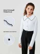 Джемпер именуемый "блузка" для девочек из высококачественного трикотажа(кулирка качество пенье). Блузка свободного покроя на манжете. По полочке проходит вертикальная декоративная бантовая складка.Планка декорирована пуговицами. Рукава длинные втачные из шифона. По длине рукава проходит ломпас из трикотажа. Модель с отложным воротником и застежкой сзади. Трикотажная блузка не деформируется после стирки, очень удобна и комфортна для вашего ребенка.