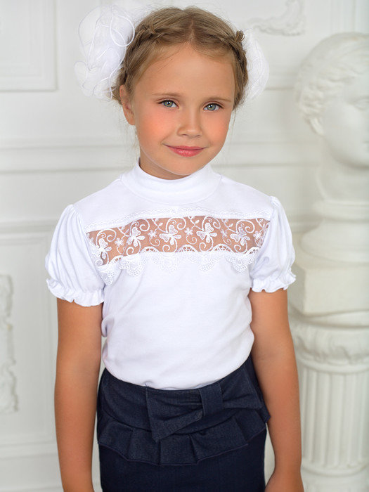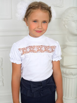 Совместные закупки Екатеринбург Детская одежда Блузки — Блузка "Кружевница", кор. рук, белый
