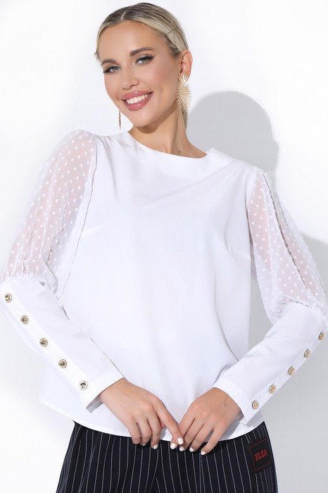 Эффектная блузка “Марина” из нашей новой коллекции. Прямой силуэт, высокий манжет на пуговицах, рукав – креп шифон, по спинке застежка.