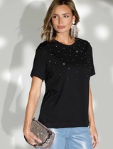 Vilatte Нарядная футболка с принтом фольгой из премиального хлопка с эластаном D