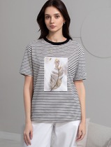 Свободная футболка в черно-белую полоску с принтом из премиального хлопка с элас