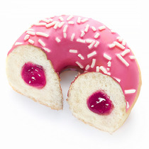 Пончик Донат-мини Клубничная начинка розовая глазурь и белая посыпка (Нидерланды
