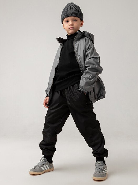 Брюки детские из плотного и стойкого к изнашиванию и повреждениям материала Дюспо. Детали: свободный покрой, пояс - эластичная резинка, низ изделия- манжеты, карманы с отрезным бочком. Материал верха: Дюспо 100% полиэстер, подкладочный материал флис