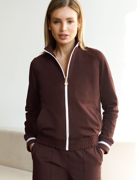 Состав: 95%Хлопок 5%ПУ Плотность: 240 Г/м2Бомбер коричневого цвета среднего объема с застежкой на молнию выполнен из премиального футера двухнитки плотностью 240 Г/м2. Натуральный состав ткани обеспечивает дышащий эффект, мягкость и приятные тактильные ощущения, Эластичный материал позволяет свободно двигаться без стеснения, а также отлично сохраняет форму даже после длительного ношения. Гладкая лицевая сторона придает бомберу опрятный и дорогой вид. Повседневный бомбер отличается аккуратным силуэтом без лишнего объема и универсальной длиной, которая идеально подходит для повседневного образа. Манжеты на рукавах и широкая резинка по низу обеспечивают надежную посадку, сохраняя тепло в прохладную летнюю погоду. Особенность бомбера - контрастные канты на горловине и манжетах, которые добавляют современный акцент и делают его более выразительным. Представленная размерная линейка позволяет подобрать оптимальный вариант для любой фигуры и размера, на маленький или плюс сайз, обеспечивая свободу движений без компромиссов по стилю. Этот легкий бомбер станет отличным дополнением к базовому или спортивному гардеробу, сочетая практичность и стиль.