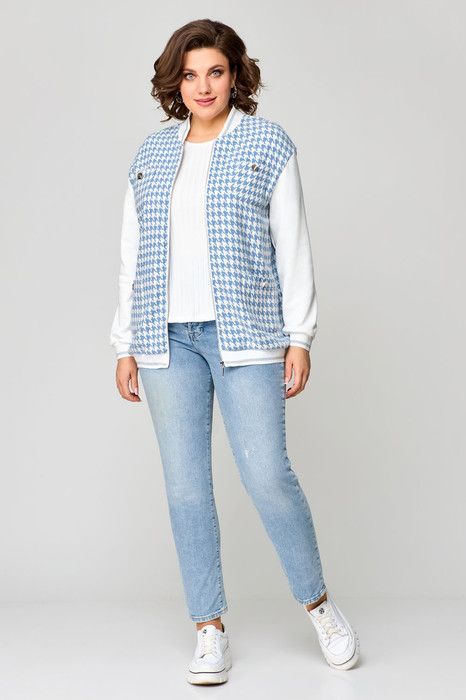 Бомбер женский прямого силуэта, с эластичным поясом по низу, со спущенной линией плеча. Застежка на молнию. Горловина круглая с эластичным воротником в виде стойки. Спереди два накладных кармана в верхней и нижней части. Рукава длинные, втачные из отделочной трикотажной ткани, по низу эластичные манжеты. Без подкладки.