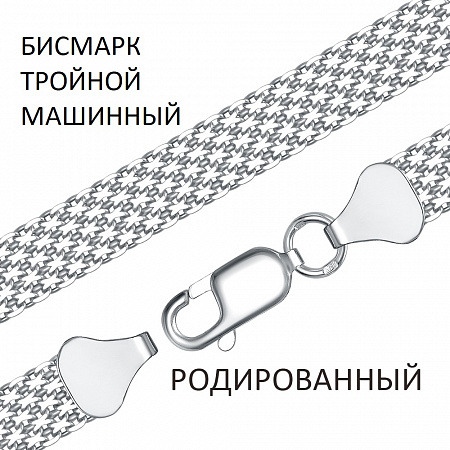 Браслет Бисмарк машинный тройной с алмазной огранкой родированный