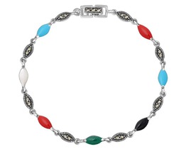 Вес: 10.43 г Вставка: Марказит Цвет камня: Красный Производство: Таиланд Покрытие: Оксидирование Количество: 6Браслет, арт.656340 Серебро Серебро 925, р. 20, 10,43 гр., марказит , синт.рубин