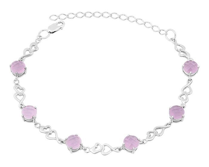 Вес: 5.37 г Вставка: Розовый кварц Цвет камня: Розовый Производство: Россия Покрытие: Родирование Ячейка: 2.H.04.01 Количество: 10Браслет, арт.655559 Серебро Серебро 925, р. 16-22, 5,37 гр., розовый кварц