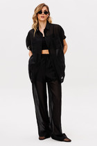 Vilatte Брюки mom fit из эластичного хлопка с покрытием под кожу D24.274 кофейны