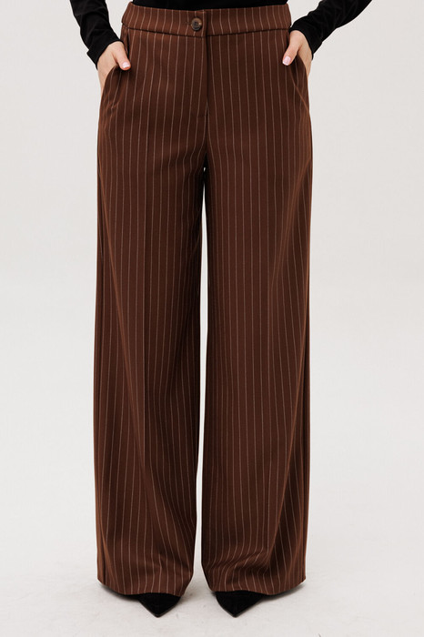 Элегантные женские брюки прямого кроя ,по переду на брючинах стрелки. Модель с высокой посадкой на притачном поясе обеспечивает идеальное прилегание. Спереди расположена практичная застежка на тесьму-молнию, добавляющая удобства при носке. Брюки укомплектованы функциональными боковыми карманами, что придает модели дополнительную практичность и удобство.