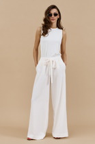 Широкие брюки из эко-кожи на хлопковой основе с резинкой по талии и боковыми карманами.