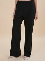 Брюки прямого кроя выполнены из ткани черного цвета.Характеристики: прямой крой, эластичная брендированная резинка, боковые карманы, на передней и задней частях брюк застрочены складки и заутюжены стрелки. Длина брюк 112 см