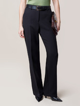 Брюки прямого кроя, выполнены из фактурной эко-кожи бордового цвета. Характеристика: прямой крой, пояс на резинке, спереди есть имитация гульфика, без подкладки, в боковых швах карманы. Длина изделия по боковому шву 96 см.