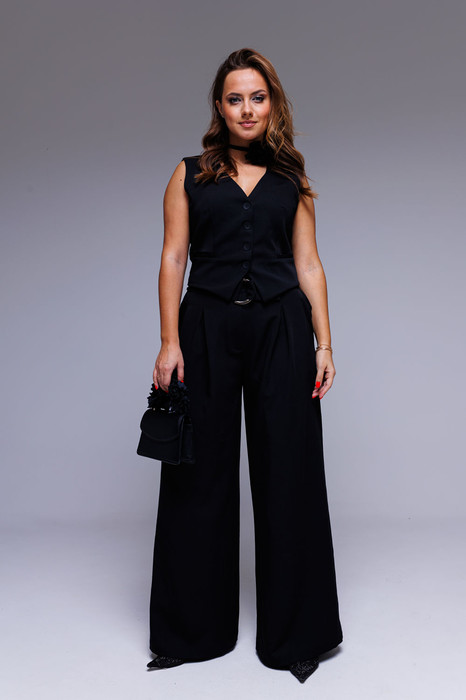 Брюки широкие черные с накладными карманами по задним половинкам брюк, с накладным поясом с пряжкой
