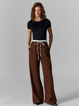 Брюки из плотного эластичного трикотажа с покрытием "нубук", прямого силуэта, зауженные к низу. Пояс с трикотажной вставкой с резинкой. Карманы брюк в боковых вставках. Изделие декорированонашивкой с авторским принтом.