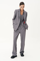 Брюки прямые,классические, с заутюженными стрелками,по переду обработаны карманы с отрезным бочком,застежка на тесьму-молнию и 1 пуговицу.На задних половинках обработаны вытачки и имитация карманов с листочкой, пояс в брюках притачной. Длина брюк от талии по боковому шву 100 см. К брюкам рекомендуем жакет 203-арт. 2 78 22 или 205-арт.2 80 22