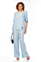 Брюки зауженные к низу на притачном отстроченном поясе. По переду имитация гульфика и карманом-листочкой от бокового шва.
