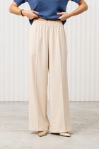 Передняя половинка: с талиевыми вытачками и заутюженными стрелками. Застежка в среднем шве по типу гульфик. На притачном поясе застёжка на две прорезные петли и пуговицы.