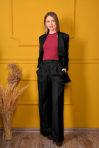 Женские брюки (спортивные штаны) свободного силуэта с функциональными карманами в боковых швах заужены к низу, пояс брюк и отрезные манжеты по низу полностью на резинке. Брюки выполнены из высококачественного футера 3-х нитки класса "пенье". Лицевая сторона ткани гладная, изнанка - петлеобразная