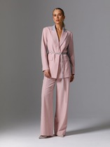 Женские брюки полуприлегающего силуэта выполнены из костюмной ткани с добавлением вискозы. По переду изделия декоративная отделочная строчка; по низу функциональная пата с пуговицей, которая позволяет регулировать прилегание брюк; в боковых швах карманы; по поясу спинки вставлена резинка; застежка на молнию, петлю и пуговицу. Брюки полностью соответсвуют заявленному размеру. Пользуйтесь таблицей замеров готового изделия.