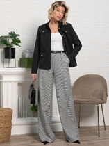 Брюки прямого силуэта с карманами в боковом шве и имитацией гульфика. Пояс притачной на резинке со шнуром в цвет отделочного канта. На задних половинках брюк застрочены вытачки. По низу брюки собраны на резинку.