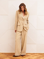 Брюки из костюмной ткани прямого силуэта на притачном поясе с эластичными лентами по бокампояса. Средней посадки. С боковыми карманами Застежка молния спереди.