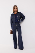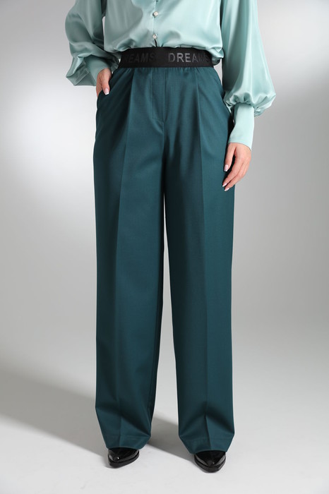 Брюки широкого  объема, прямого силуэта. На передних половинках брюк заутюжены стрелки, переходящие в складки по линии талии. На задних половинках также заутюжены стрелки. В боковых швах расположены карманы.