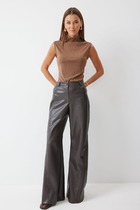 Женские брюки малого объема, прямого силуэта. На передних половинках с обеих сторон расположены под наклоном нефункциональные прорезные карманы в рамку. На задних половинках расположены вытачки. Пояс отрезной. На поясе расположены шлевки. Застежка брюк – гульфик на молнии, на поясе крючок. Фурнитура и материалы отделки могут незначительно отличаться от тех, что на фотографи.