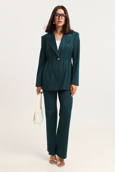 Женские брюки малого объема, прямого силуэта. На передних половинках с обеих сторон расположены под наклоном нефункциональные прорезные карманы в рамку. На задних половинках расположены вытачки. Пояс отрезной. На поясе расположены шлевки. Застежка брюк – гульфик на молнии, на поясе крючок. Фурнитура и материалы отделки могут незначительно отличаться от тех, что на фотографи.Рост фотомодели 175 см. Размер у фотомодели – 44.