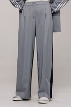 Брюки женские из тонкого костюмного полушерстяного полотна в цвете 2022 года по версии Pantone. Им стал сиреневый оттенок под названием 17-3938 Very Peri. В институте описывают новый цвет как «динамичный синий с живительным фиолетово-красным оттенком, который сочетает в себе верность и постоянство синего с энергией и возбуждением красного». Натуральное шерстяное волокно позволяют телу дышать, а полиэстер делает брюки более износостойким. Брюки свободного прилегания по бедрам и зауженные к низу, длинной 7/8. Пояс на эластичной тесьме с кулисой и втянутым шнурком. Вход в карман фигурный, наклонный к боковому шву. Длина брюк 95,5-97,5 см.