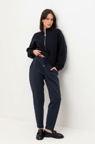 Брюки прямого силуэта из костюмной ткани. По верху брюк декоративная резинка. На передних половинках карманы и декоративные складки. На задних половинках вытачки. Обращаем ваше внимание, что фурнитура может отличаться от фото.