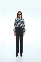 Брюки прямого силуэта из костюмной ткани. По верху брюк декоративная резинка. На передних половинках карманы и декоративные складки. На задних половинках вытачки. Обращаем ваше внимание, что фурнитура может отличаться от фото.