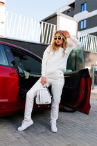 Брюки со стрелкой свободного кроя, верхний срез представлен широкой резинкой, с карманами.