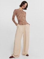 Прямые брюки-палаццо из струящейся вискозы. Брюки на широком поясе, в который вставлена декоративная тесьма. Функциональные карманы в боковых швах. Глубокие односторонние складки спереди и прорезные карманы – обманки сзади.