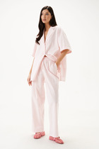 Прямые женские брюки с высокой посадкой, из льна. По верху брюк притачной пояс с застежкой на петли и пуговицы и шлевками для ремня. На передних половинках обработаны складки и карманы в боковых швах, застежка молния по переду. На задних половинках вытачки.