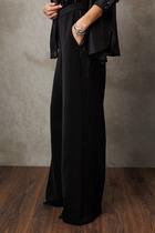 Модель зауженная к низу, на притачном поясе, со шлёвками. Спереди карманы в подрезных бочках и защипы по талии. Сзади имитация прорезных карманов с листочкой. Ремень в комплект не входит.