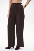 Спереди карманы в подрезных бочках. Сзади прорезные карманы с листочкой. Пояс комбинированный, со шлёвками, спереди - подкройной, сзади - притачной со сборкой на резину. Застёжка молния и крючки с пуговицей на поясе. Ремень в комплект не входит.