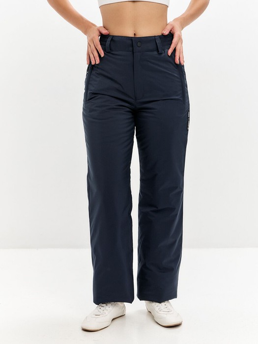 Теплые женские брюки изготовлены из водоотталкивающей плащевой ткани с мембранным пленочным покрытием. Брюки прямого силуэта утеплены высококачественным полиэфирным материалом. Подкладка - гладкая полиэфирная ткань. Карманы брюк прорезные, с молниями. Под левым карманом нашивка с фирменным логотипом. Пояс брюк с внутренней стороны изготовлен из мягкого ворсованного трикотажа, Для регулировки брюк по талии предусмотрена резинка и шлевки для поясного ремня.