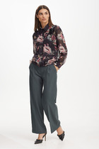 Брюки женские из текстильной ткани (вельвет-штрукс), слегка заужены к низу. В боковых швах расположены карманы. По низу передних половинок есть защип. Задняя половинка брюк с отрезной кокеткой и накладными карманами. Вверх брюк обработан поясом с резинкой (без молнии).