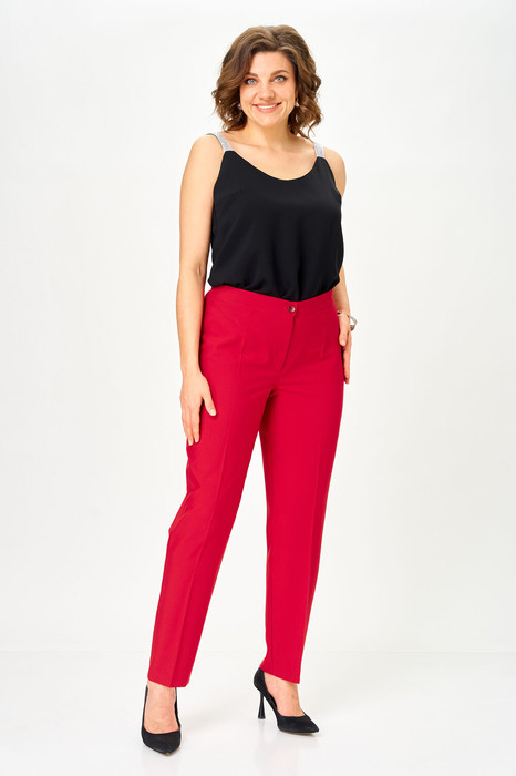 Брюки зауженные классические. Застежка на молнию, петлю и пуговицу. В поясе брюк по бокам вставлена резинка для удобства посадки на талии. Фурнитура от наличия может меняться.