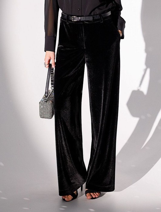 Брюки палаццо созданы для тех, кто ценит благородный стиль и комфорт. Мягкая бархатная ткань придает образу лаконичный блеск и особый шарм,. Благодаря эластичной ткани свободные брюки подойдут на любую фигуру, подчеркивая достоинства силуэта и позволяя чувствовать себя уверенно в любой ситуации, Вы будете чувствовать себя уверенно. Лаконичный крой прямых брюк гармонично сочетается с повседневными вещами, превращая образ в шикарный вариант для вечерних мероприятий или торжественных событий.