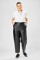 Брюки на резинке по всему поясу, что придаст вам комфорт в носке и не стеснит движений. В боковых швах карманы. К низу брюки заужены. По переду выполнены вертикальные рельефы с декоративным фигурным окончанием по линии низа.