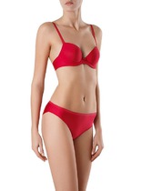 Модель выполнена из кружевного полотна, бретели декорированы бантиками.